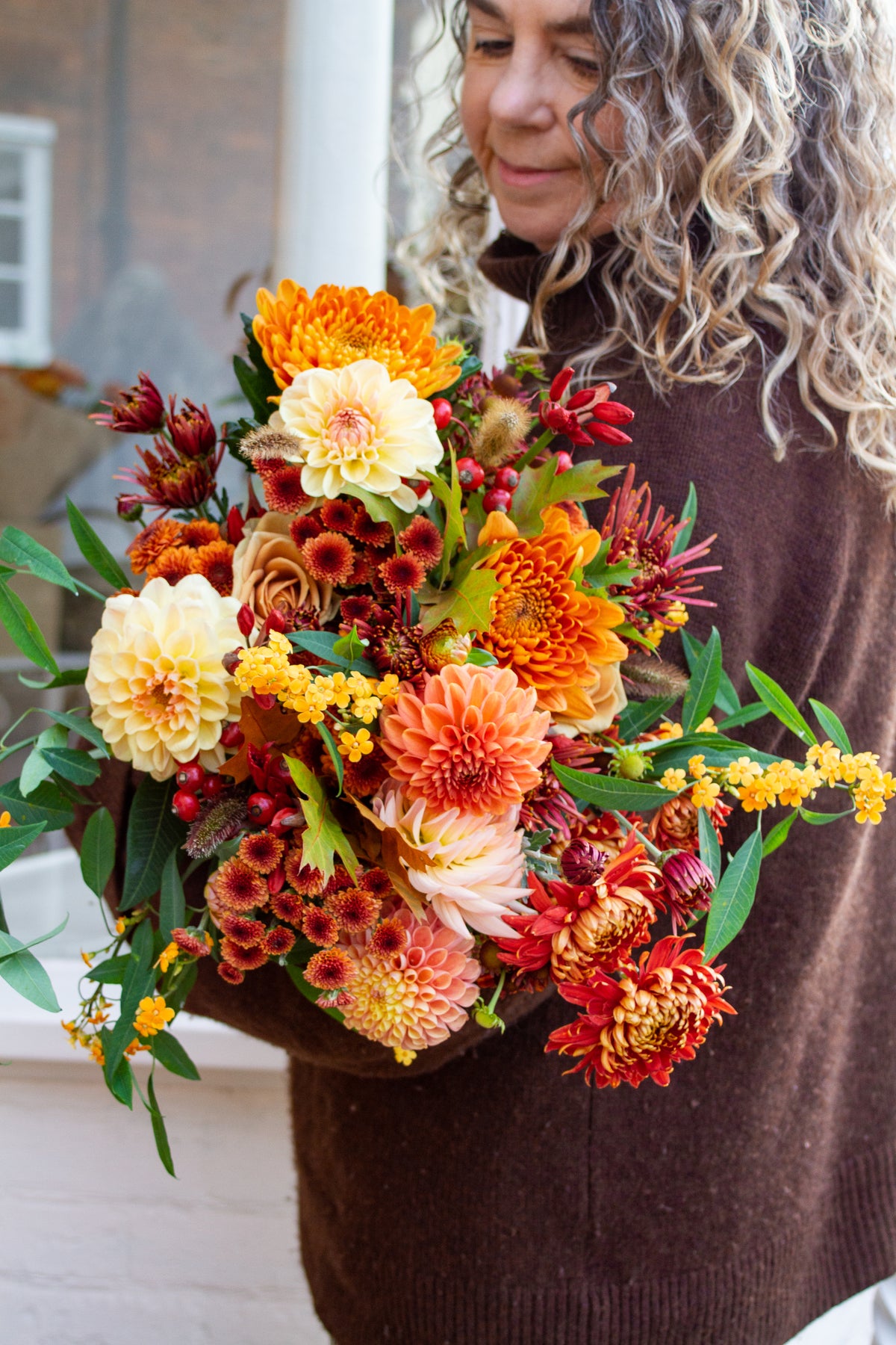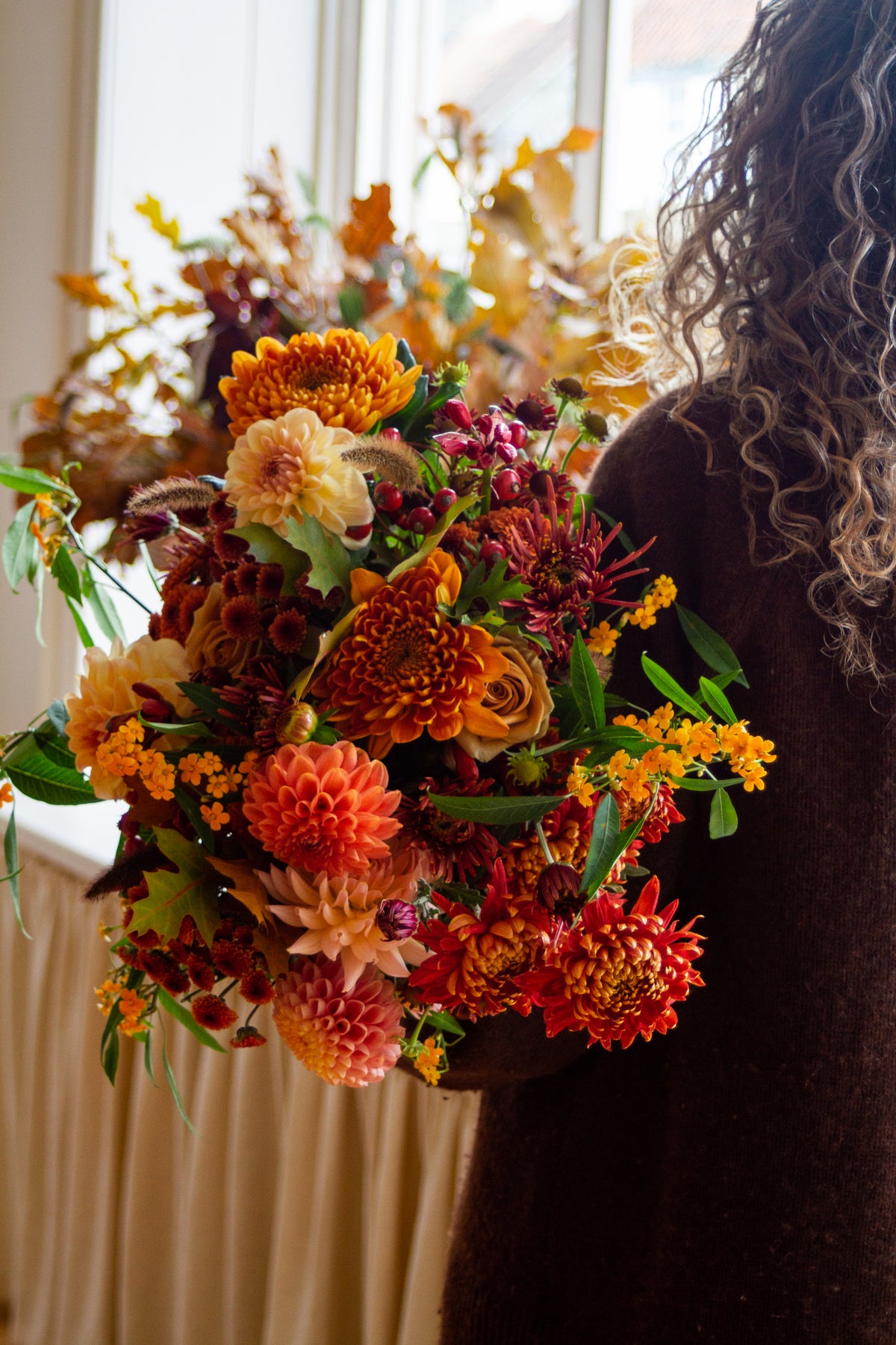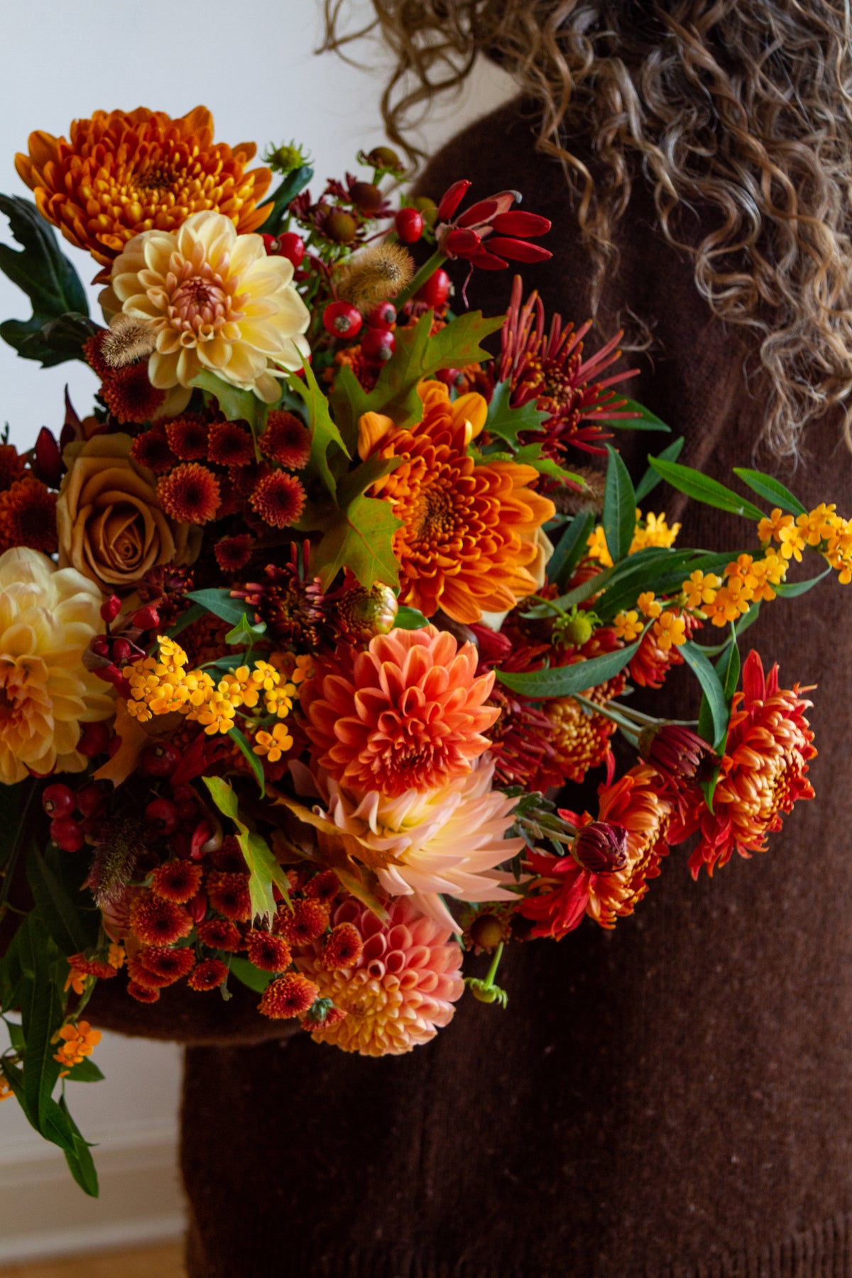 There’s a warmth to November — the glow of candlelight, the crackle of bonfire night, and the comfort of being indoors as the nights draw in. Our Glowing Embers bouquet is inspired by that feeling of cosiness and light in the dark, a tribute to autumn’s final flourish before winter settles in.